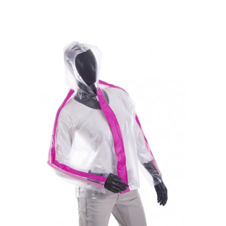 Chaqueta siliconada para mujeres motociclistas y ciclistas. Cómoda, resistente y con diseño especial de franjas de color.